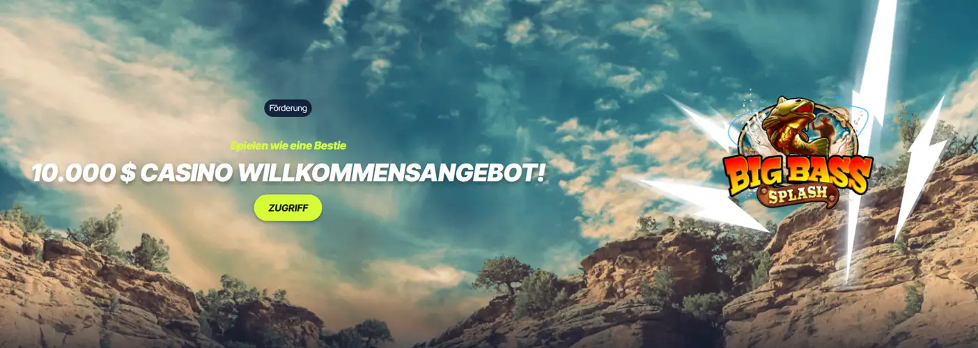 Neue Spieler können sich im BetBeast Casino direkt nach der Registrierung auf einen attraktiven Willkommensbonus freuen. Hier wartet ein fantastisches Willkommenspaket, durch das sich Spieler zusätzliches Startguthaben in Höhe von bis zu 10.000€ + 600 Freispiele abholen können.