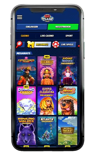 Das BigClash Casino bietet eine beeindruckend große und klar strukturierte Spielbibliothek. Insgesamt warten über 8.500 Spiele auf dich, von schnellen Sofortgewinnen über moderne Slots bis hin zu exklusiven Live-Dealer-Tischen. Die Kategorien sind übersichtlich aufgebaut, wodurch du neue Titel, Top-Games, Jackpots oder Live-Tische schnell findest.