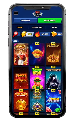 Mit mehr als 8.000 Slots ist dies die größte Kategorie im BigClash Casino – randvoll mit Klassikern, Neuheiten und exklusiven Titeln. Auf der Startseite findest du Reihen wie Top, Neu, Beliebt oder Exklusiv, damit du sofort das findest, wonach du suchst.