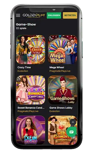 Das Live Casino umfasst über 60 Live-Dealer-Spiele und gehört zu den stärkeren Bereichen bei GoldenPlay. Gespielt wird mit echten Dealern per Livestream, überwiegend von bekannten Live-Anbietern.ern. Die Auswahl deckt sowohl klassische Casinospiele als auch moderne Live Game Shows ab.