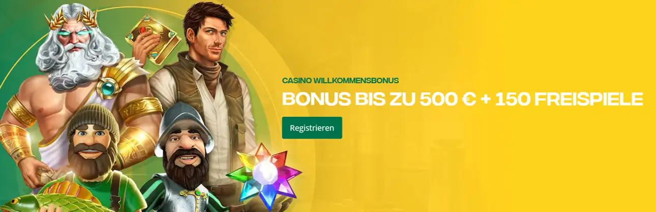 | 1. Einzahlung | 100% bis zu 500€ + 150 Freispiele für Book of Dead |