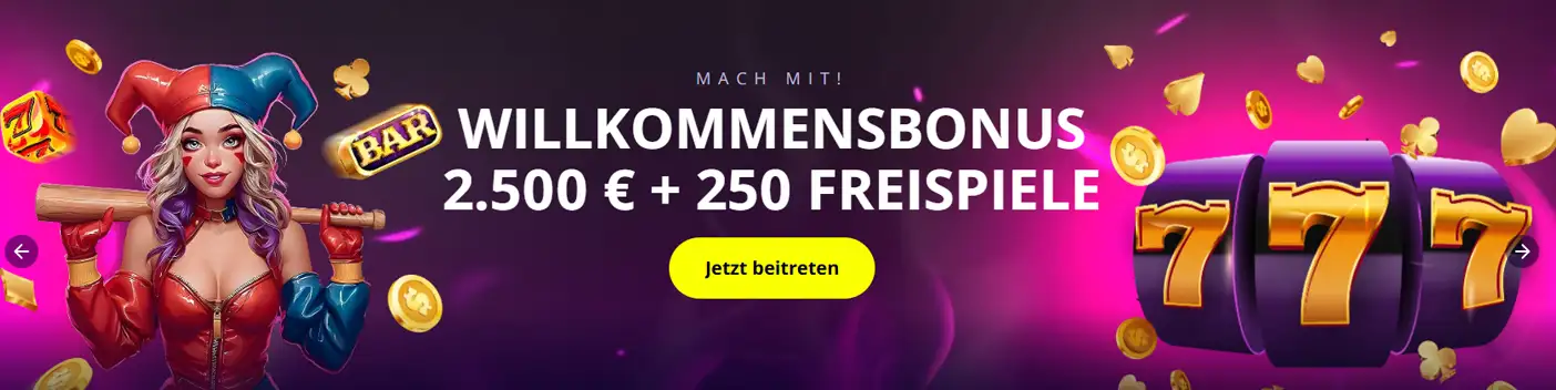 Der Willkommensbonus im Slotoro Casino umfasst insgesamt bis zu 2.500€ Bonusgeld sowie 250 Freispiele, verteilt auf drei Einzahlungen. Das Bonuspaket ist klar strukturiert, aber zeitlich streng geregelt.