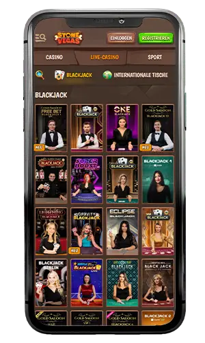 Neben zahlreichen Online-Slots und vielen elektronischen Tischspielen hast du im StoneVegas Casino jedoch auch die Möglichkeit, auf einen großen Live-Casino-Bereich zurückzugreifen. In dieser Spielkategorie findest du etliche Titel des Providers Evolution Gaming. Hierzu zählen unter anderem viele spannende Versionen für Live-Roulette, Live-Blackjack und Live-Baccarat.
