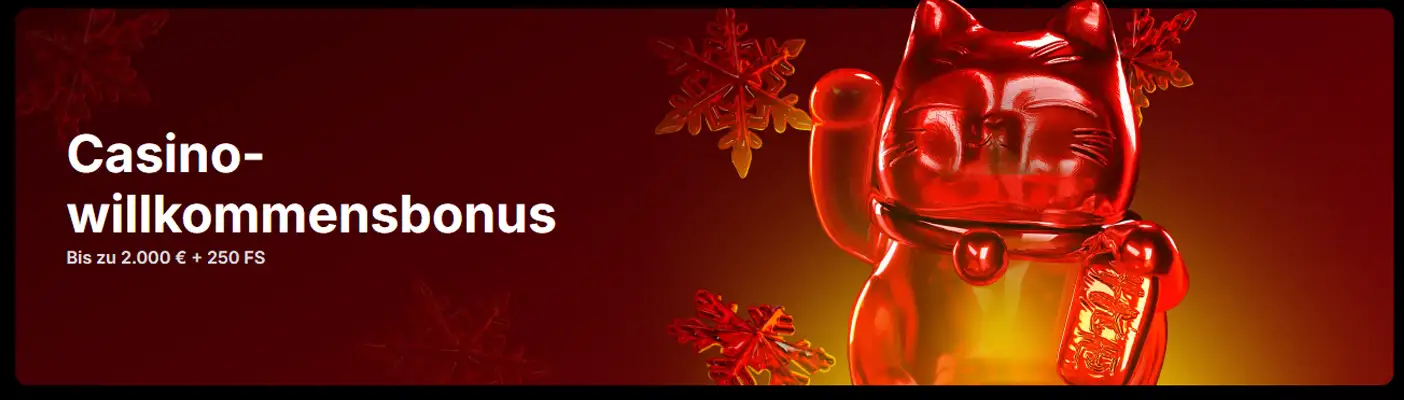 Neue Spieler erhalten einen mehrstufigen Willkommensbonus mit bis zu 2.000€ Bonusgeld und 250 Freispielen, verteilt auf die ersten drei Einzahlungen. Pro Einzahlung kann nur ein Bonus aktiviert werden.