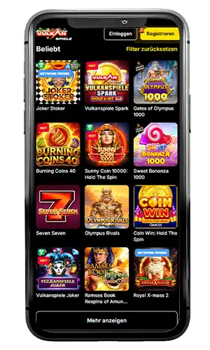 Beliebte Titel sind zum Beispiel Joker Stoker, Gates of Olympus 1000, Burning Coins 40, Sweet Bonanza 1000, Seven Seven oder hauseigene Vulkanspiele Slots. Auch viele Network Promos und Turnierslots sind integriert.