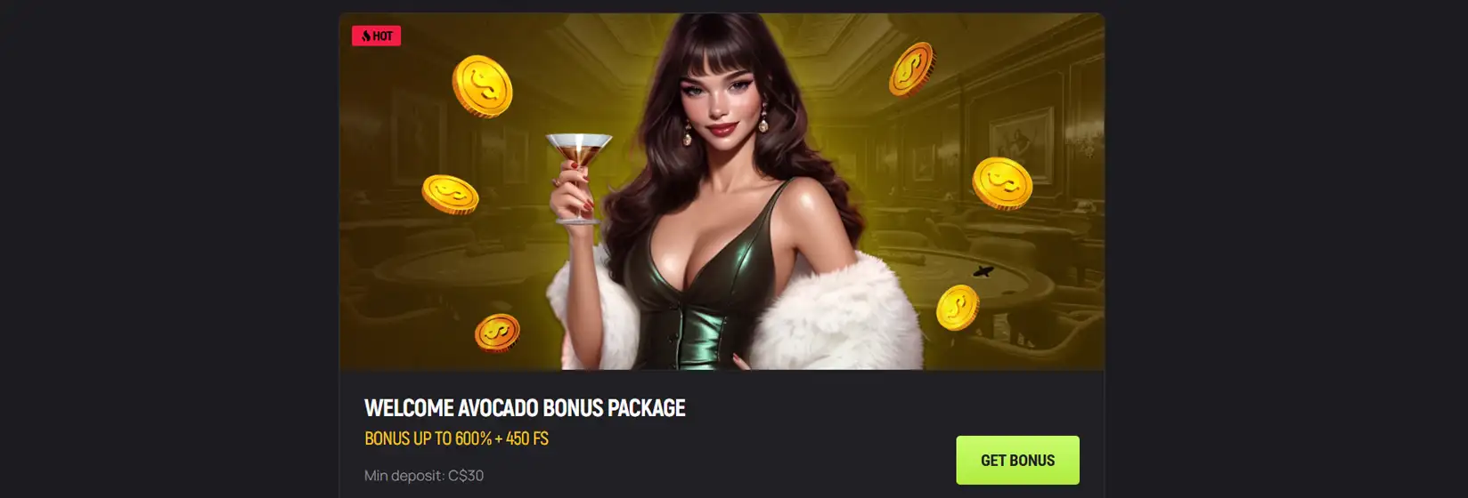 New players at AvoCasino Casino are eligible for a generous Avocado bonus package of up to $9,000 and 450 free spins. This is a four-deposit bonus that rewards you with higher bonus percentages based on your deposit amount. The higher your deposit, the more the bonus amount you will be eligible for.