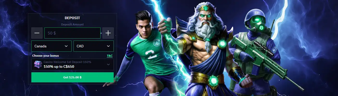 You don't need a bonus code to take advantage of this offer. The bonus is automatically credited upon making the qualifying deposit. If it's not credited automatically, contact the support team before making any bets. The bonus isn't restricted to any specific payment options.