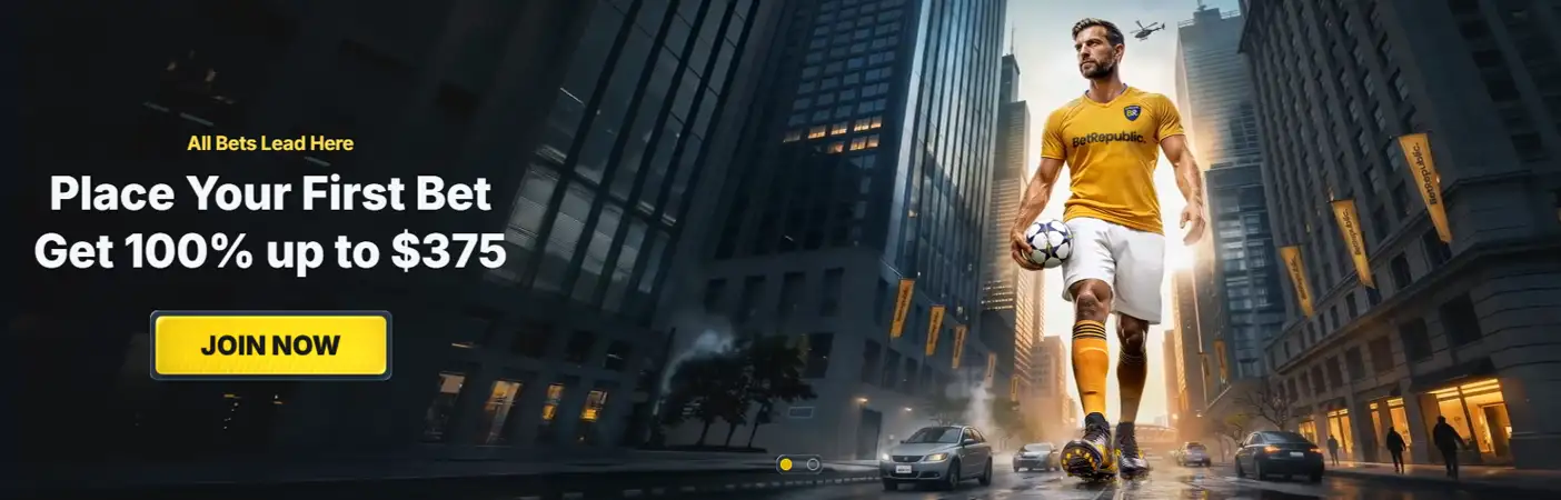 BetRepublic offers a dedicated sportsbook welcome bonus. The offer is simple and focused on sports betting activity.
