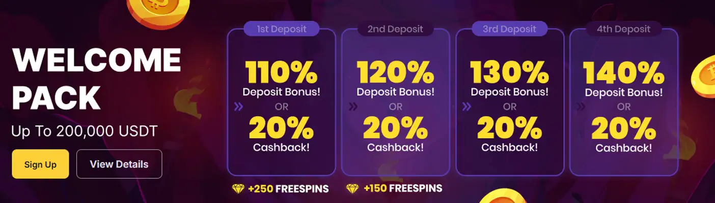 | First Deposit Bonus | 110% deposit bonus + 250 free spins OR 20% cashback + 250 free spins |