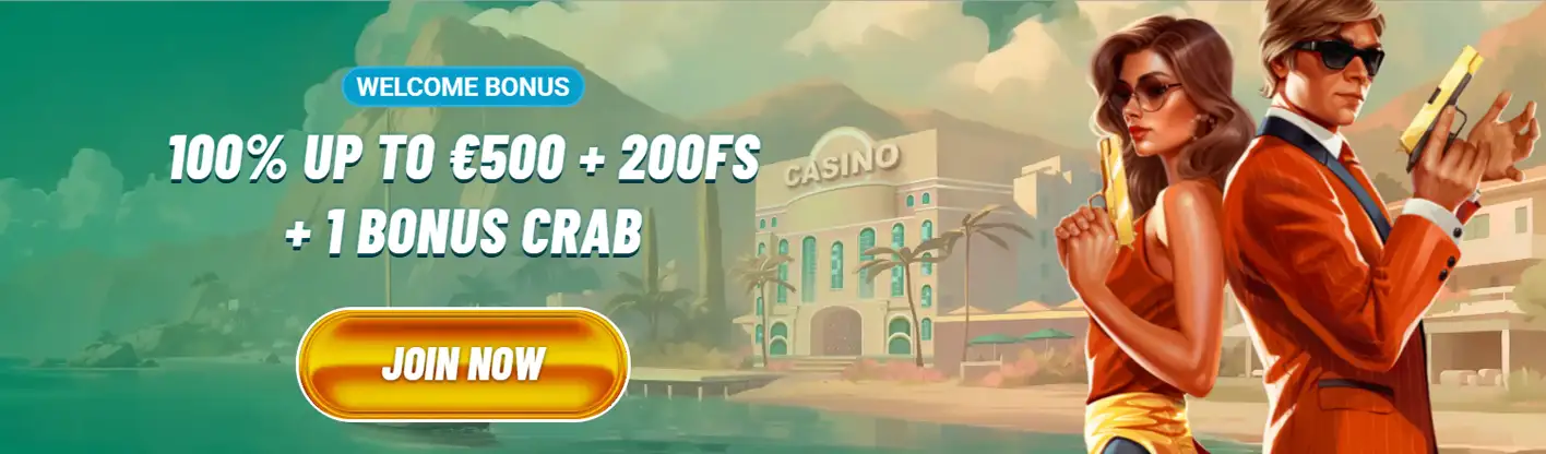 New players at Vegasino are welcomed with a 100% first deposit bonus up to €500, plus 200 free spins and 1 Bonus Crab pick for extra prizes. This offer is designed to give your first session a substantial boost, whether you’re into slots, table games, or trying out new releases.
