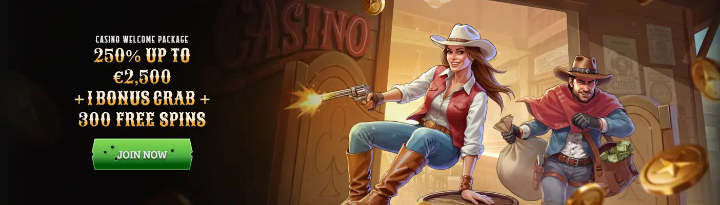 Wildsino greets new players with a bold Western-style offer. The exact bonus depends on your country and currency and the offer is split across the first three deposits. Players can receive up to 250% in total, capped at $/€2,500 plus 300 free spins.